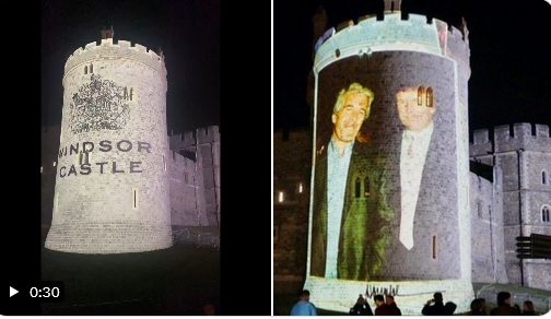 În timpul vizitei oficiale în Marea Britanie, pe fațada Castelului Windsor au fost proiectate imagini ale președintelui american alături de Jeffrey Epstein, condamnat pentru infracțiuni sexuale. Acest gest, interpretat ca o formă de protest, a avut loc marți seara, în prima zi a șederii.
